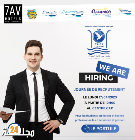تنظم كلية العلوم القانونية و الاقتصادية والاجتماعية بتطوان بشراكة مع شركة فنادق 7يام يوم الإثنين 17 أبريل 2023 ابتداء من العاشرة صباحا النسخة الأولى من “يوم الأبواب المفتوحة للتشغيل “.