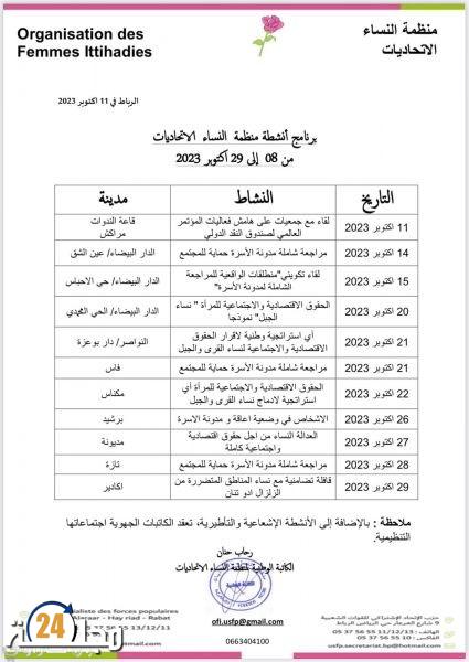 أطلقت “منظمة النساء الاتحاديات”برنامجا من أجل دراسة ومراجعة شاملة ودقيقة لمدونة الأسرة، معلنة أنها تعد “هذه المراجعة بمثابة حماية للمجتمع وللأسرة على السواء”، وذلك وفق برنامج زمني طيلة شهر اكتوبر 2023، بالدار البيضاء و عدد من مدن الجهة.