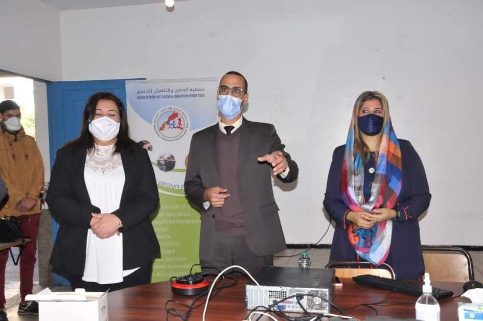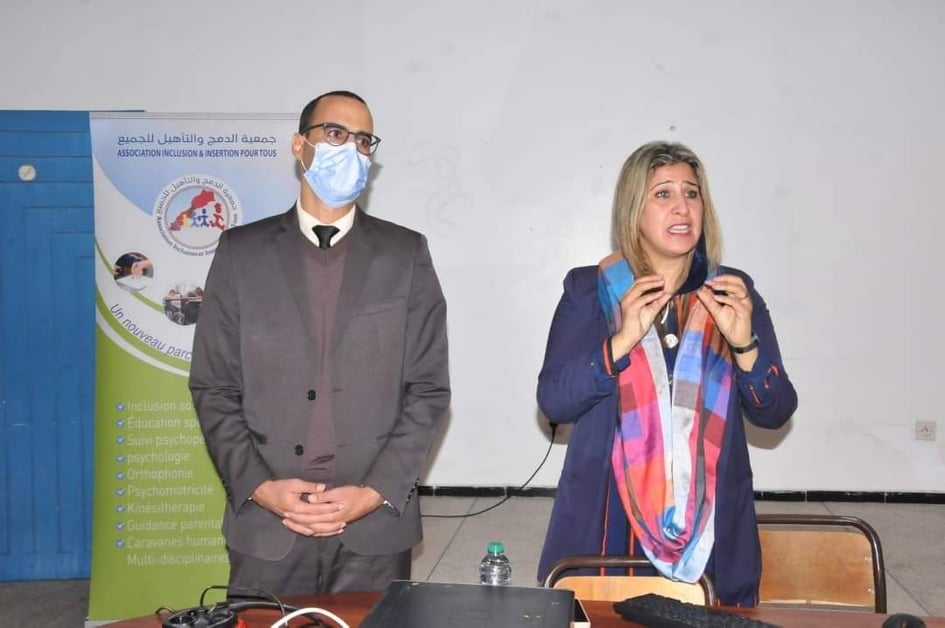 اليوم الثاني من أنشطة البرنامج الأسبوعي للتربية الدامجة، وتنفيذا للبرنامج المسطر من طرف المديرية الإقليمية والجمعيات الشريكة المهتمة بمجال الإعاقة بالإقليم، أشرفت جمعية الدمج والتأهيل للجميع وجمعية التدخل المبكر للأطفال في وضعية إعاقة على تأطير ورشة تحسيسية تواصلية لفائدة أساتذة السلك الإعدادي والابتدائي الذين لم يسبق لهم الاستفادة من التكوين في هذا المجال، حيث تناولت محاور هذه الورشة علاقة الترويض الطبي بالإعاقة، وأهمية الترويض الحس حركي ودور الأخصائي النفسي، إلى جانب الجمعيات العاملة في مجال الإعاقة، كذلك تم التفاعل مع المواضيع بطرح مجموعة من الأسئلة والمشاكل في محاولة منهم لإيجاد حلول أكثر إجراء وفاعلية لمواجهة الصعاب التي يواجهونها داخل الفصول الدراسية .