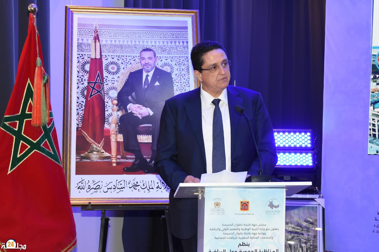 نظم مجلس جهة طنجة- تطوان- الحسيمة، بتعاون مع وزارة التربية الوطنية والتعليم الأولي والرياضة، وولاية الجهة والجامعات الملكية للرياضات الجماعية، المناظرة الجهوية حول الرياضة، تحت شعار “منهج تشاركي من أجل ريادة الرياضة بجهة طنجة – تطوان – الحسيمة”، بمدينة طنجة يومه السبت 24 فبراير 2024. وقد عرفت هذه المناظرة، حضور رئيس مجلس الجهة، والكاتب العام لوزارة التربية الوطنية والتعليم الأولي والرياضة، و عمدة طنجة والكاتب العام للشؤون الجهوية بولاية الجهة، ونائب الجامعة الملكية المغربية لكرة القدم ورئيس الجامعة الملكية المغربية لكرة اليد ورئيس الجامعة الملكية المغربية للدراجات ورئيس الجامعة الملكية المغربية للأشخاص في وضعية إعاقة والرئيس المنتدب للجامعة الملكية المغربية للكرة الطائرة والكاتب العام للجامعة الملكية المغربية لكرة السلة، والسادة رؤساء العصب الرياضية والسادة أعضاء مجلس الجهة والسادة ممثلي المصالح الممركزة واللاممركزة والسادة ممثلي الجماعات الترابية وعدد من الجمعيات الرياضية بحضور أزيد من مائتين وخمسين مشاركًا. وقد تميزت الجلسة الافتتاحية للمناظرة بتقديم مجلس الجهة للجامعة الملكية المغربية لكرة القدم، هدية رمزية عبارة عن صورة تذكارية لأول فريق لكرة القدم تأسس بمدينة طنجة سنة 1919 وكان يحمل اسم “المغرب الأقصى”، وكذا نسخة أصلية لنموذج كرة القدم التي كان يتم اللعب بها حينذاك.