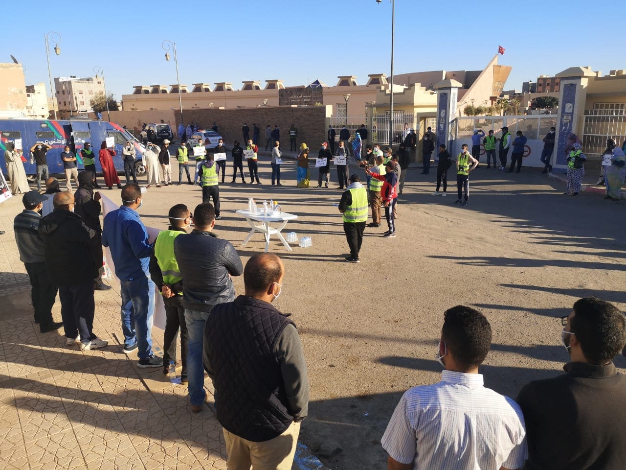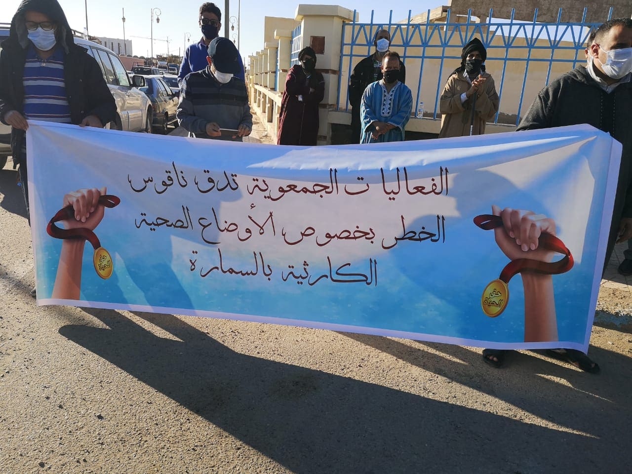 و في ختام البيان دعا المحتجون الى ضرورة الالتزام و الإنخراط الفعلي و الحاد لاحترام الإجراءات الإحترازية و الوقائية للحد من تفشي جائحة كورونا التي حصدت معها أعداد كبيرة في الأرواح .