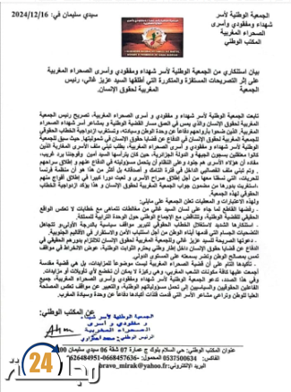 بيان استنكاري من الجمعية الوطنية لأسر شهداء ومفقودي وأسرى الصحراء المغربية على إثر التصريحات المستفزة والمتكررة التي أطلقها عزيز غالي