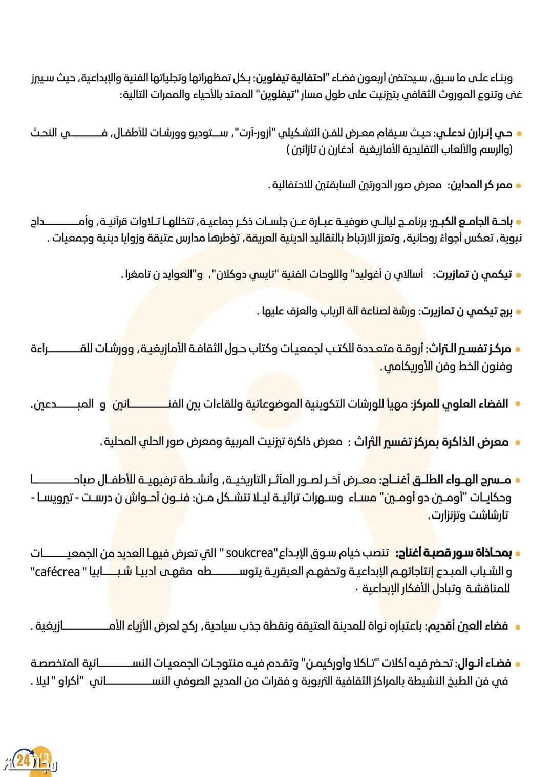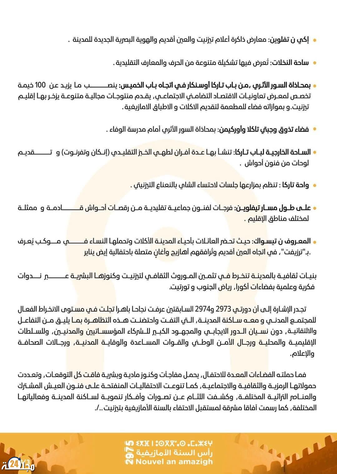 تستمر الاحتفالية في تعزيز التفاعل بين السكان المحليين وزوار المدينة، وتعتبر النسخة الثالثة من “تيفلوين” خطوة مهمة في ترسيخ الهوية الثقافية للمدينة وتعزيز مكانتها على الخريطة السياحية والثقافية للمغرب.