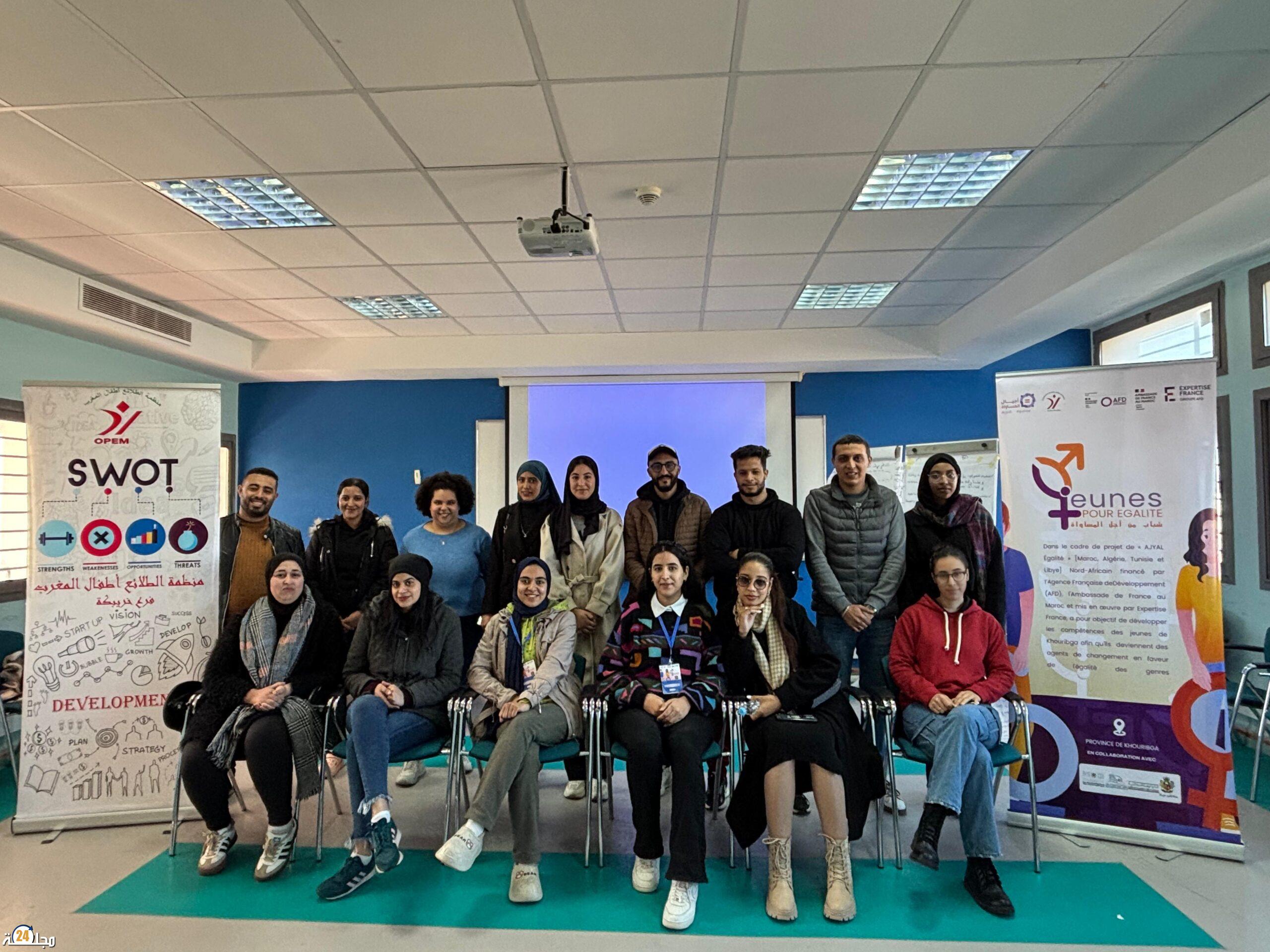 في إطار برنامج «أجيال المساواة » الممول من الوكالة الفرنسية للتنمية (AFD) و السفارة الفرنسية في المغرب، الذي يهدف إلى تعزيز المساواة بين المرأة و الرجل في شمال أفريقيا. الذي تنفذه ‘Expertise France’ يدعم الفاعلين المحلين المهتمين بقضية المساواة بين الجنسين ؛ تنظم منظمة الطلائع أطفال المغرب خريبكة دورة تكوينية حول موضوع القيم و مبادئ المساواة و حقوق الإنسان و النساء وذلك في إطار مشروع «#شباب من اجل #المساواة» و الذي يهدف إلى تعزيز حقوق الإنسان و ترسيخ ثقافة المساواة بين الشابات و الشباب بالجهة.