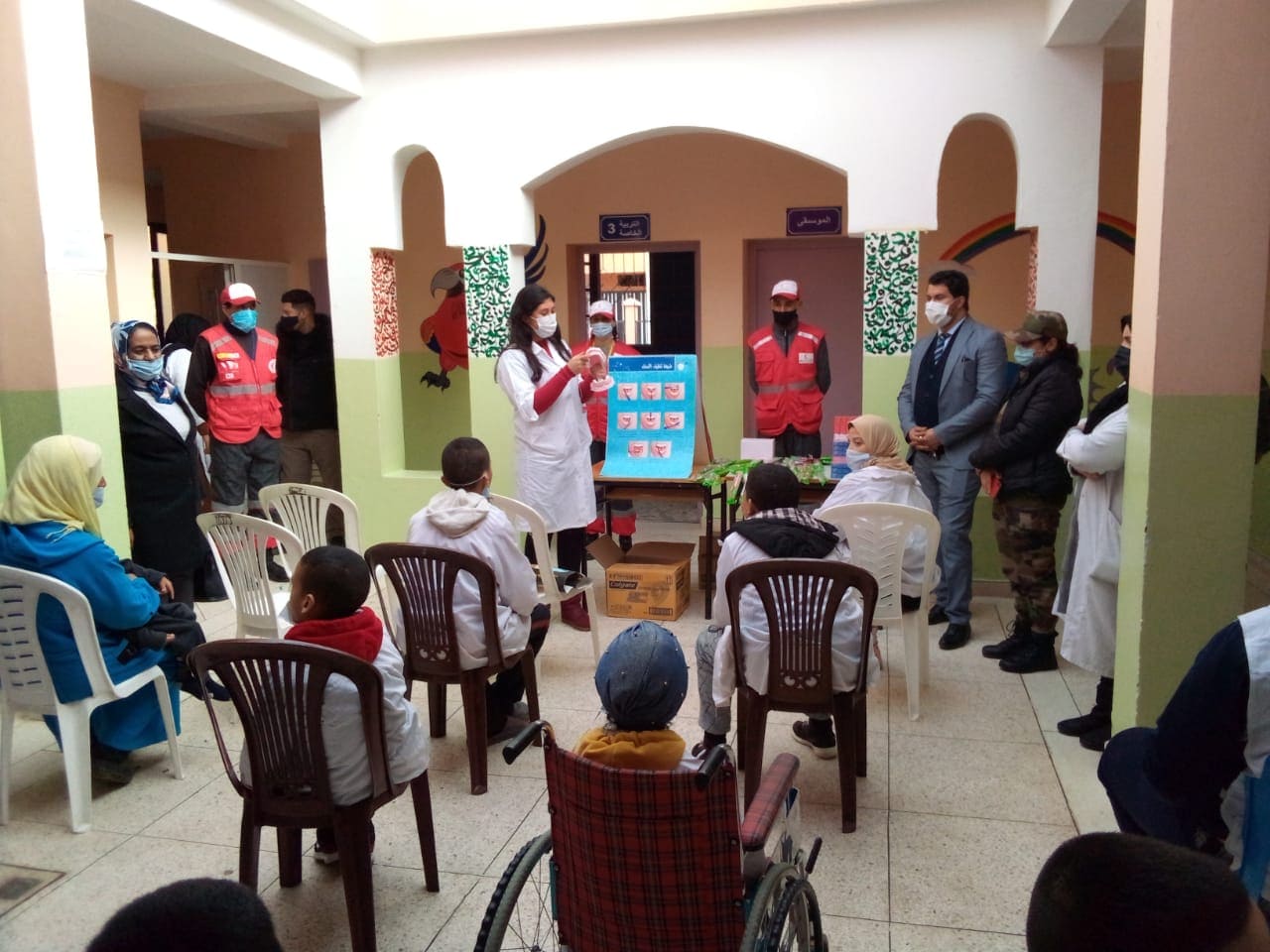 الحملة الطبية شارك فيها فريق الهلال الأحمر المغربي بالرحامنة، حيث أشرفت عناصره على إعطاء مجموعة من التداريب للمستفيدين فيما يخص اتخاد الإجراءات الاحترازية أثناء الحملة الطبية لمكافحة فيروس كورونا، الفعالية الطبية المنظمة عرفت حضور السيد باشا المدينة والسيد مندوب الصحة ومجموعة من الفاعلين بالمدينة، وشملت عدة تخصصات أهمها طب الأسنان، والعيون، والأذنين.