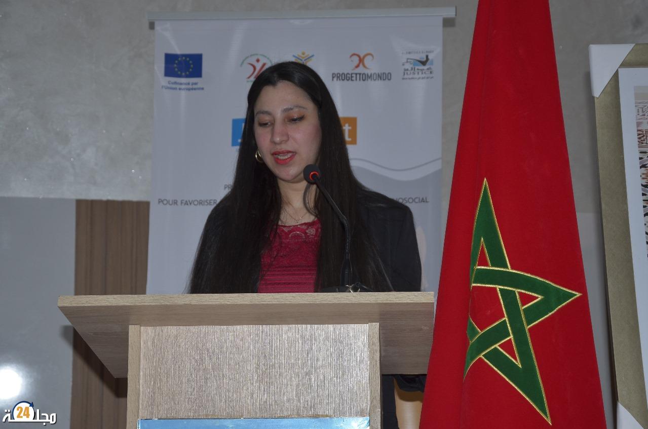 وفي هذا المضمار قامت بتحليل السياق وتحليل المشكل والإشكالية المطروحة المبنية على احتلال جهة بني ملال خنيفرة التي تضم في تناياها اقاليم خريبكة. الفقيه بن صالح. بني ملال. أزيلال. وخنيفرة، المرتبة الثانية على الصعيد الوطني من حيث النساء المعنفات بنسبة كبيرة وهو الأمر ذاته بالنسبة للقاصرين المتواجدين في نزاع تام مع القانون المستشري في المؤسسات السجنية. والشباب الذين لديهم نزاع مع القانون وتحت المراقبة المحروسة. هذه النسب والأعداد تشكل هلعا وخوفا بارزا وتحيل الجميع إلى طرح تساؤلات واقعية تقول نفس المتدخلة ، وهي لماذا، وكيف، وماهو الحل خصوصا مع استشراء ثقافة التهميش الذي تتخبط فيه هذه المواضيع الحساسة. ولهذا الغرض كانت الحاجة ملحة لمشروع يفكر في الحل وليس فقط في العقاب.