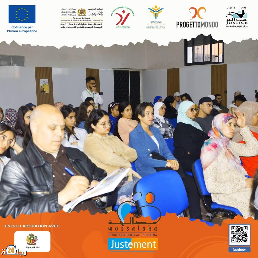 احتضنت القاعة الكبرى لمركز التكوين المهني الإقليمي بخريبكة حفل انطلاق مشروع مصالحة لمناهضة العنف ضد النساء وحماية القاصرين بالمؤسسات السجنية والشباب تحت المراقبة المحروسة بخريبكة وذلك مساء يوم 23 أبريل الجاري في إطار مشروع ” Justement” المنظم من طرف منظمة الطلائع – أطفال المغرب وجمعية الرياض للتربية والفنون بخريبكة بشراكة مع منظمة ” Progettomond” وبتمويل من الاتحاد الأوروبي هذا اللقاء الذي ترأس أشغاله وجلساته الكاملة وألقى كلمته الافتتاحية السيد نبيل متقال رئيس منظمة طلائع – أطفال المغرب فرع خريبكة شكل مناسبة مهمة لتبادل الآراء والخبرات في مجالات متعددة ومشتل للأفكار والبرامج التنويرية والتثقيفية الهادفة ويعد فرصة سانحة للتعرف على مستجدات قانونية وفكرية رصينة.