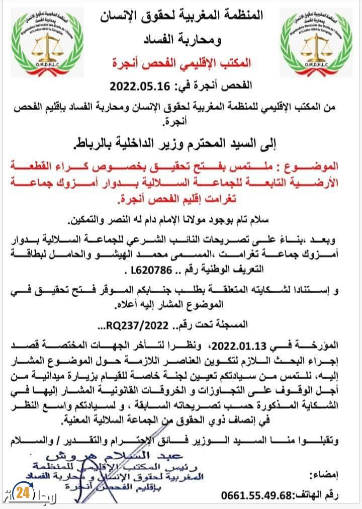 وتعود تفاصيل الواقعة إلى شكاية تقدم بها أحد المتضررين، والتي على ضوئها راسلت المنظمة المغربية الجهات الوصية بتاريخ 13 يناير 2022، مطالبة بفتح تحقيق رسمي تحت رقم: RQ237/2022. غير أن تأخر تشكيل لجنة البحث الميداني دفع المنظمة إلى تجديد مطلبها وإثارة القضية من جديد، في رسالة مؤرخة بـ16 ماي 2022.