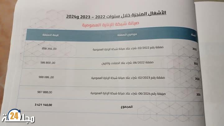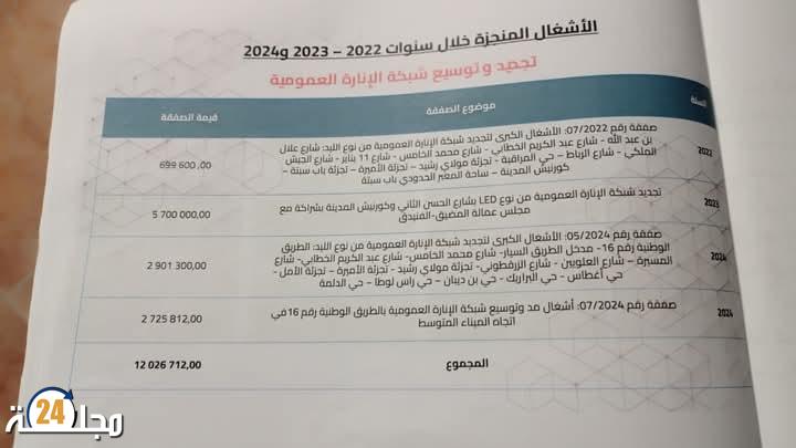 صفقة صيانة وترميم الإنارة العمومية، التي تفتقد حسبه للنجاعة والاستمرارية.
