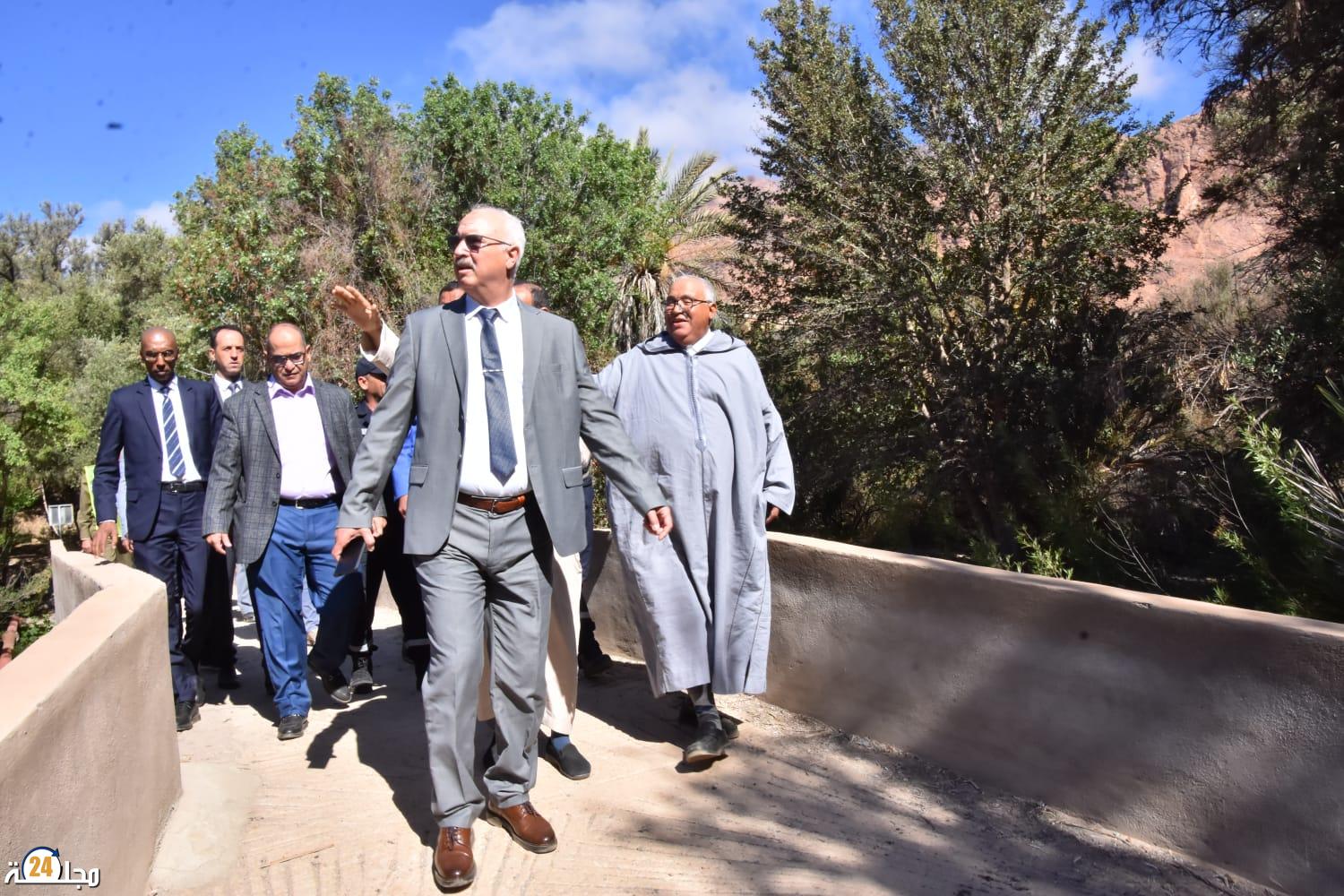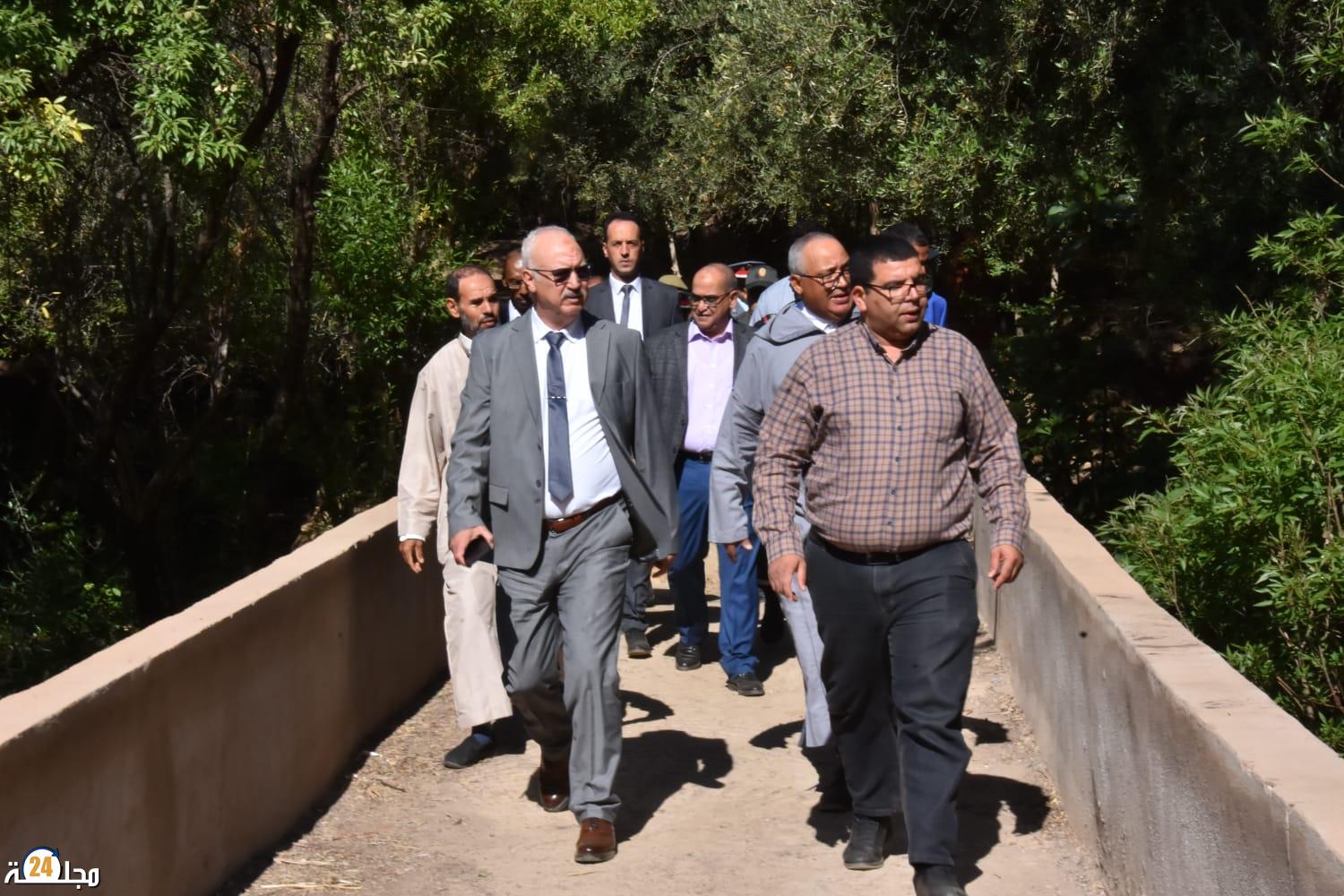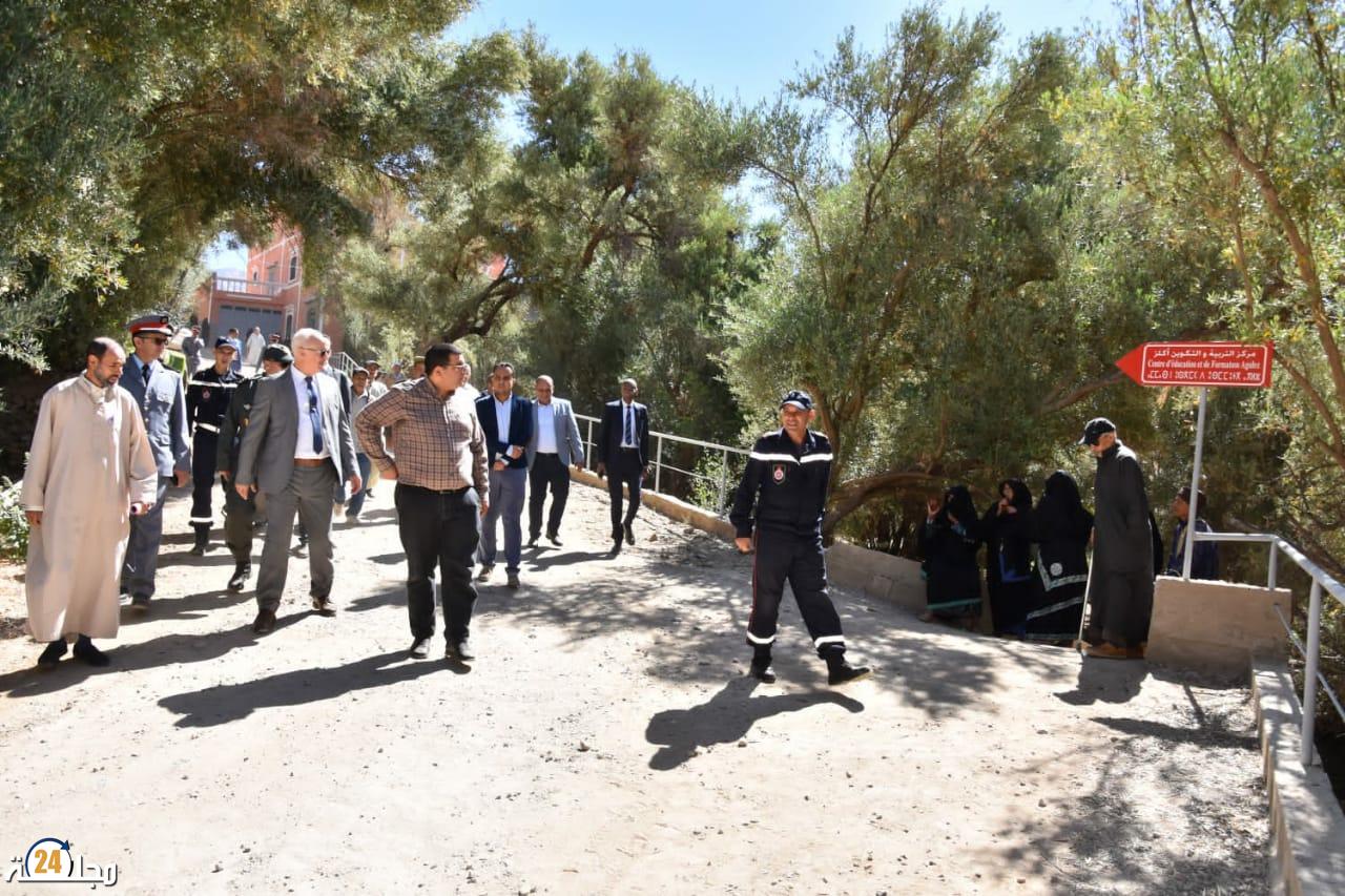 كما قام السيد العامل بزيارة إلى واحة انيل انامر، حيث اطلع على تجربة جمعية انيل للتنمية والتعاون في مجال الوقاية من الحرائق، وقد تم تقديم معطيات تفصيلية حول التجهيزات المتوفرة ونقط المياه المحدثة والتي يمكن استغلالها لتسهيل عمليات التدخل عند الحاجة، واكد السيد العامل على أهمية توسيع نطاق هذه التجربة النموذجية، والعمل على تعميمها على المناطق المهددة بالحرائق على مستوى الجماعة للرفع من الوقاية والاستجابة السريعة في حالات الطوارئ.