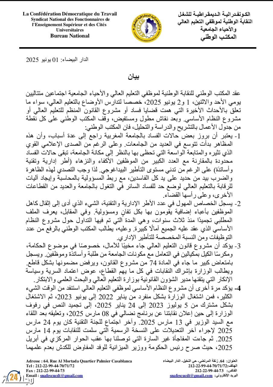 الوقفة تأتي مرفوقة بإضراب وطني إنذاري يمتد ليومي 17 و18 يونيو، تعبيراً عن الرفض الجماعي للتهميش، والتنديد بالجمود الذي يعرفه ملف النظام الأساسي الخاص بموظفي التعليم العالي، رغم جولات الحوار المتعددة.