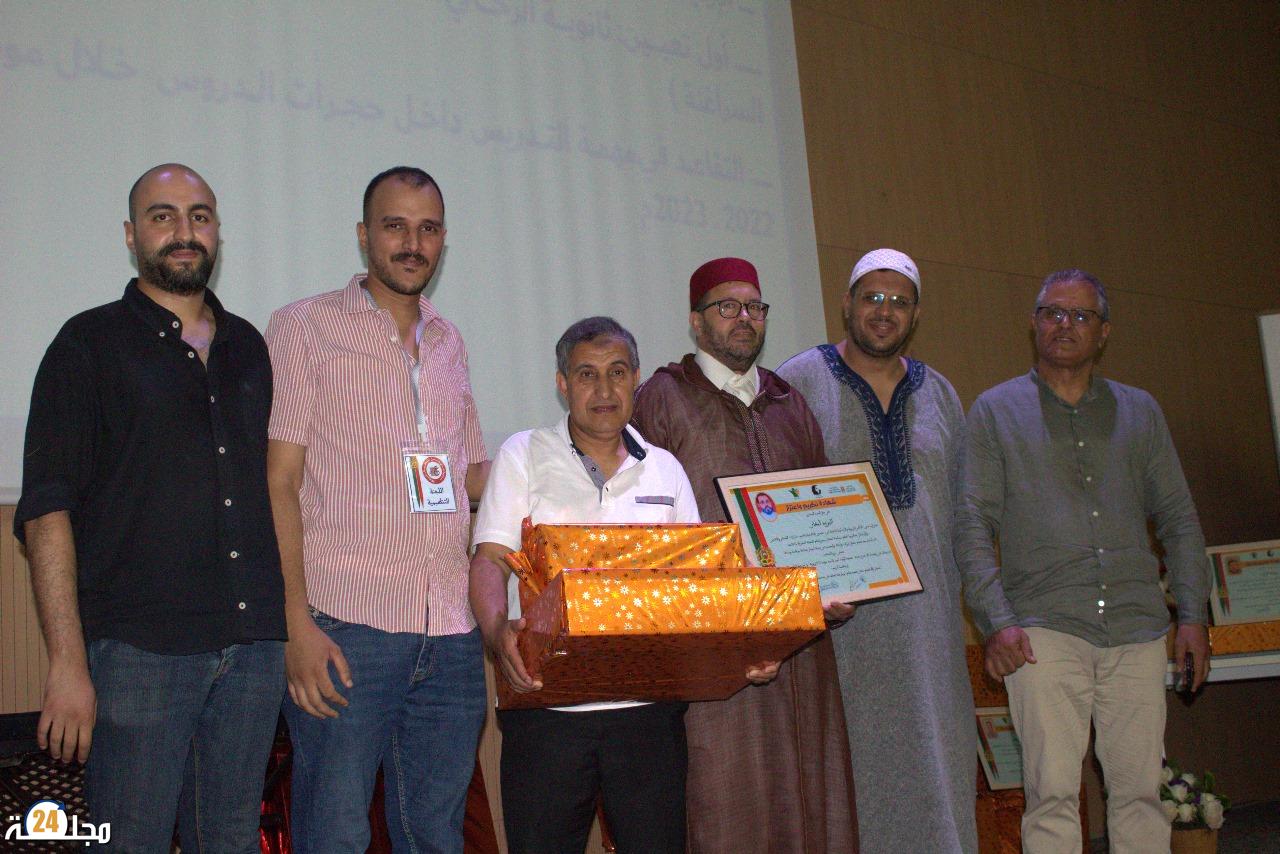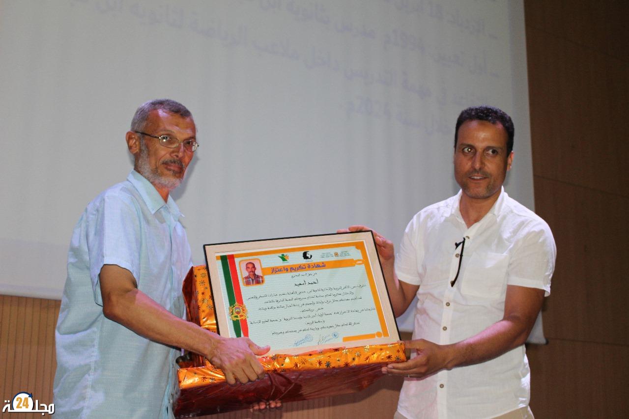 أولا: الأستاذ أحمد الطنجاوي من مواليد سنة 1965 وقدم له شواهد وهدايا التكريم الأستاذ خالد الأبيض.