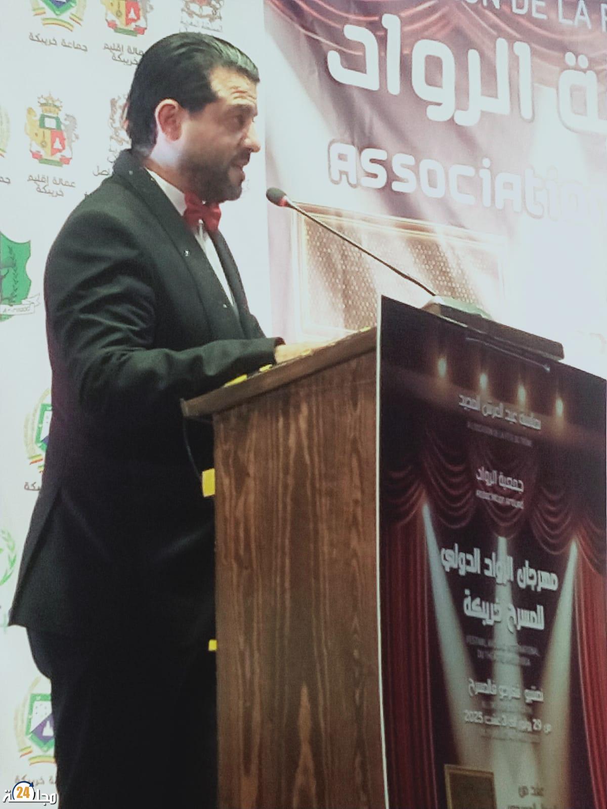 افتتحت فعاليات الدورة العاشرة لمهرجان الرواد الدولي للمسرح بخريبكة الذي ينظم بمناسبة عيد العرش المجيد وذلك مساء يوم الثلاثاء 29 يوليوز والذي سيستمر إلى غاية يوم 03 غشت 2025 بالمركب الثقافي محمد السادس بخريبكة تحت شعار ”نمشيو نتفرجو فالمسرح”، في بداية هذا الحفل الذي حضرته شخصيات وازنة من فنانين ومنتخبين ورجال الصحافة والإعلام وجمهور دواق لأب الفنون المسرح تقدم الفنان والمبدع عبد الرزاق بن عامر عن إدارة المهرجان