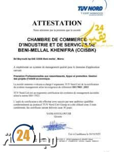 حصلت غرفة التجارة والصناعة والخدمات ببني ملال-خنيفرة على شهادة إدارة الجودة ISO 9001:2015، بعد اجتيازها بنجاح تدقيقاً شاملاً لنظام الإدارة المعتمد على الخدمات المهنية للمواطنين ودعم المشاريع الاقتصادية ومواكبة المبادرات ذات المصلحة الاقتصادية.