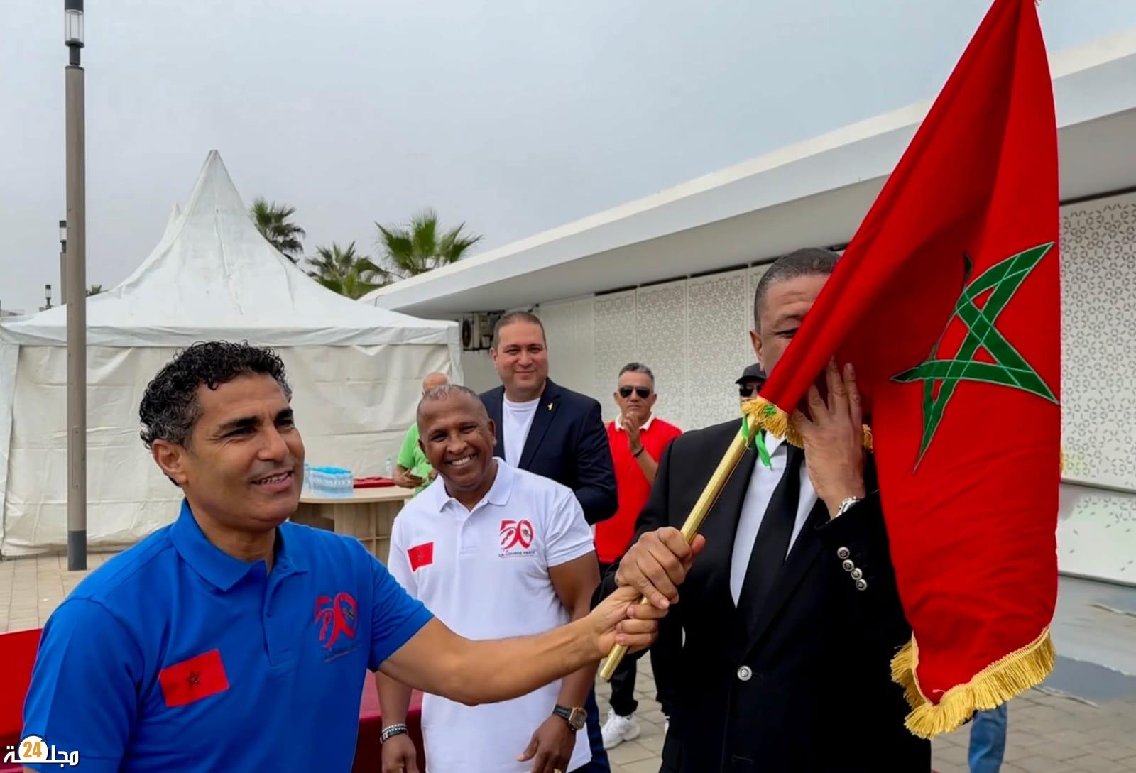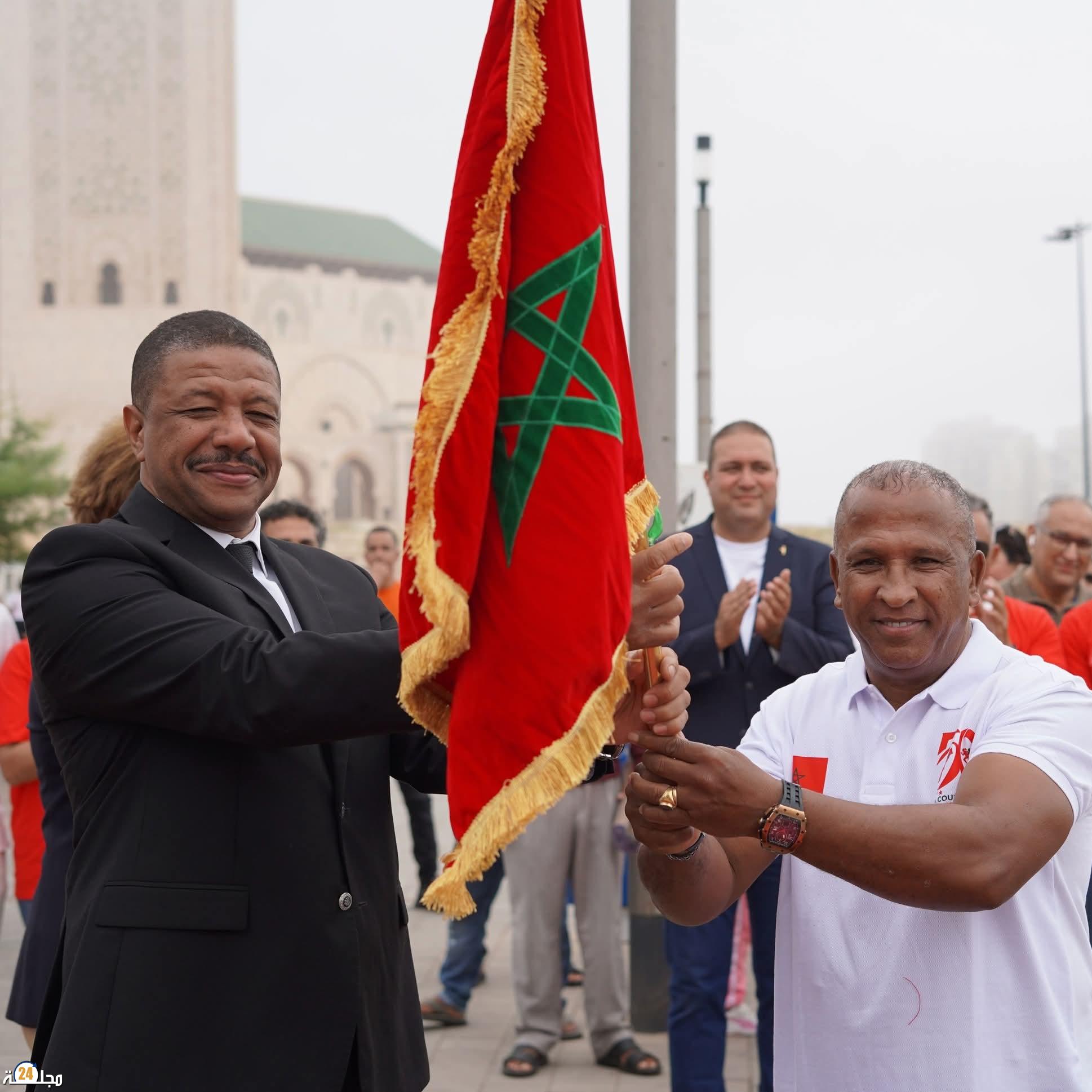 فبعد تسلمه العلم الوطني من اللاعب الدولي السابق في صفوف الرجاء البيضاوي والفريق الوطني لكرة القدم ، صلاح الدين بصير ، قام الكاتب العام لولاية الدار البيضاء بتسليم العلم الوطني لعبد الحق عشيق ، الذي كان قد منح المغرب أول ميدالية في رياضة الملاكمة، وكانت برونزية، في دورة الألعاب الأولمبية بسيول عام 1988.