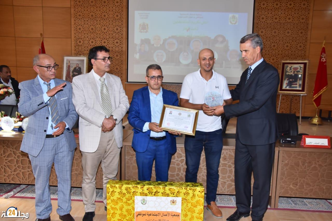 ولا يمكن أن يمر هذا الحفل دون الإشادة بالجهود المتميزة لرئيس الجمعية، السيد العربي بن المحفوظ، الذي ما فتئ يعمل بدأب وإخلاص من أجل خدمة مصالح الموظفين وتحسين أوضاعهم الاجتماعية، متمنين له دوام التوفيق في مساعيه.