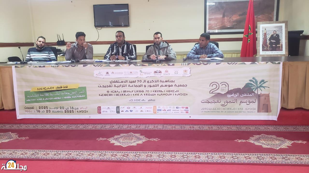 في إطار فعاليات الملتقى الوطني لموسم التمور، المنظم تحت شعار “تثمين التمور دعامة أساسية للفلاحة التضامنية”، وبمبادرة من جمعية موسم التمور وبشراكة مع الجماعة الترابية تغجيجت، احتضنت قاعة الندوات بتغجيجت يوم الثلاثاء 18 نونبر 2025 ندوة فكرية وثقافية بعنوان: «واحات تفجيجت وأحوازها: مقاربات متقاطعة في الذاكرة الجماعية والمتخيل الشعبي».