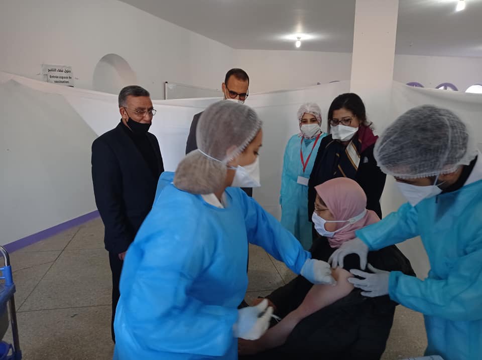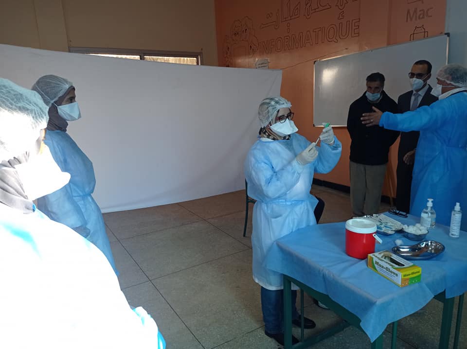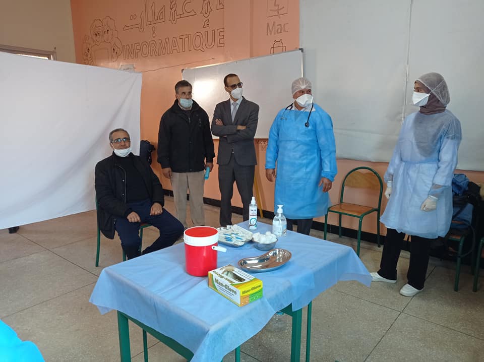 أشرف المدير الإقليمي رفقة رئيس مصلحة الشؤون التربوية ورئيس مصلحة الشؤون القانونية و التواصل و الشراكة على إعطاء انطلاقة حملة التلقيح ضد فيروس كوفيد 19 لفائدة الأطر الإدارية و التربوية بالإقليم بمختلف فئاتهم، وذلك بكل من الثانوية الإعدادية مجمع الخير و الثانوية الإعدادية مولاي عبد الله.