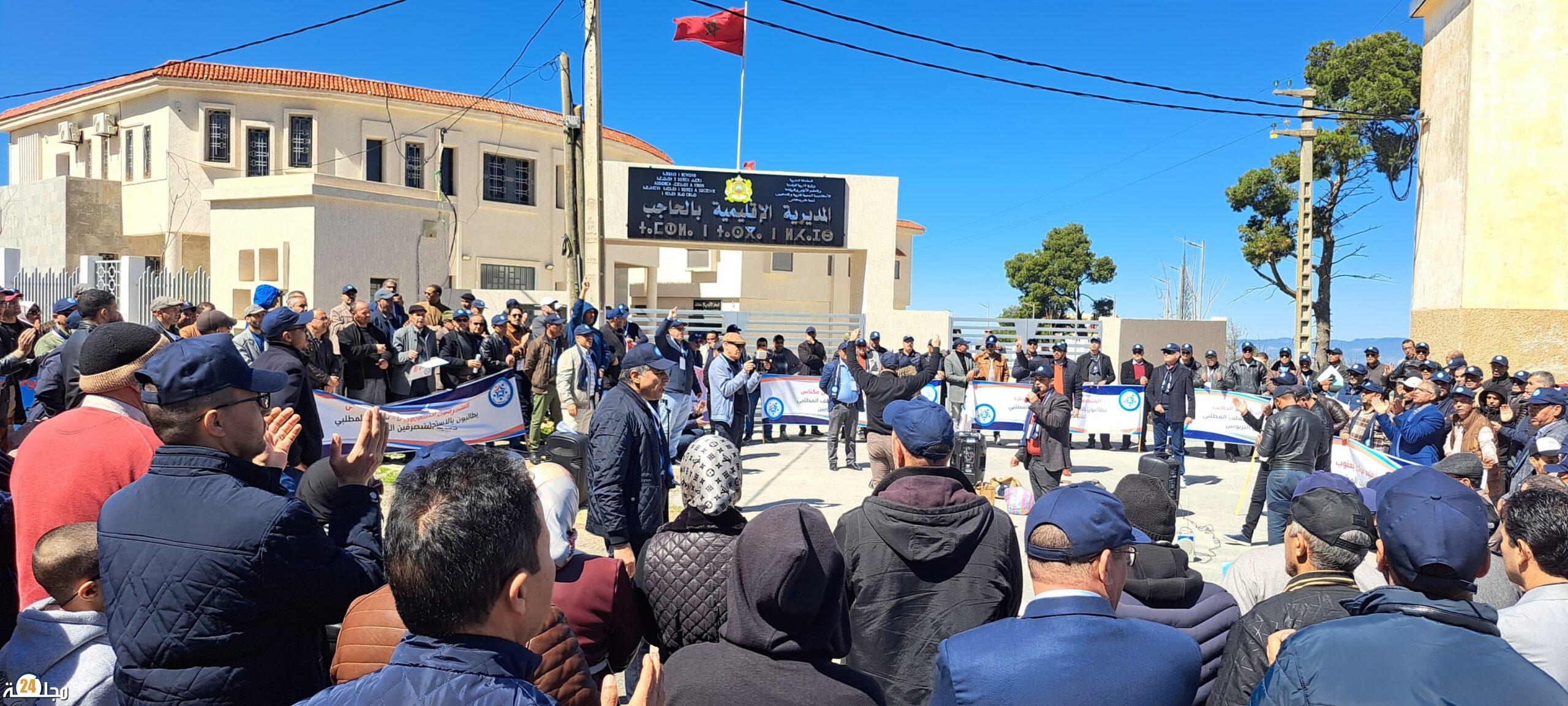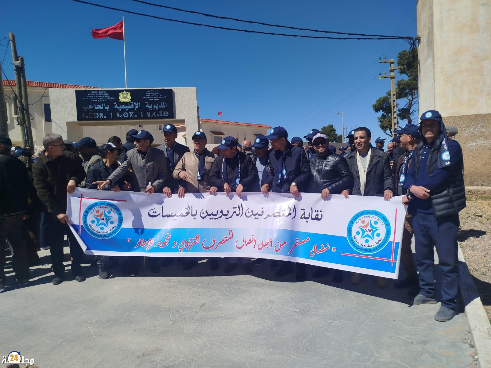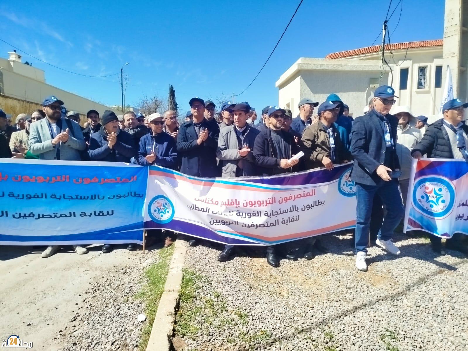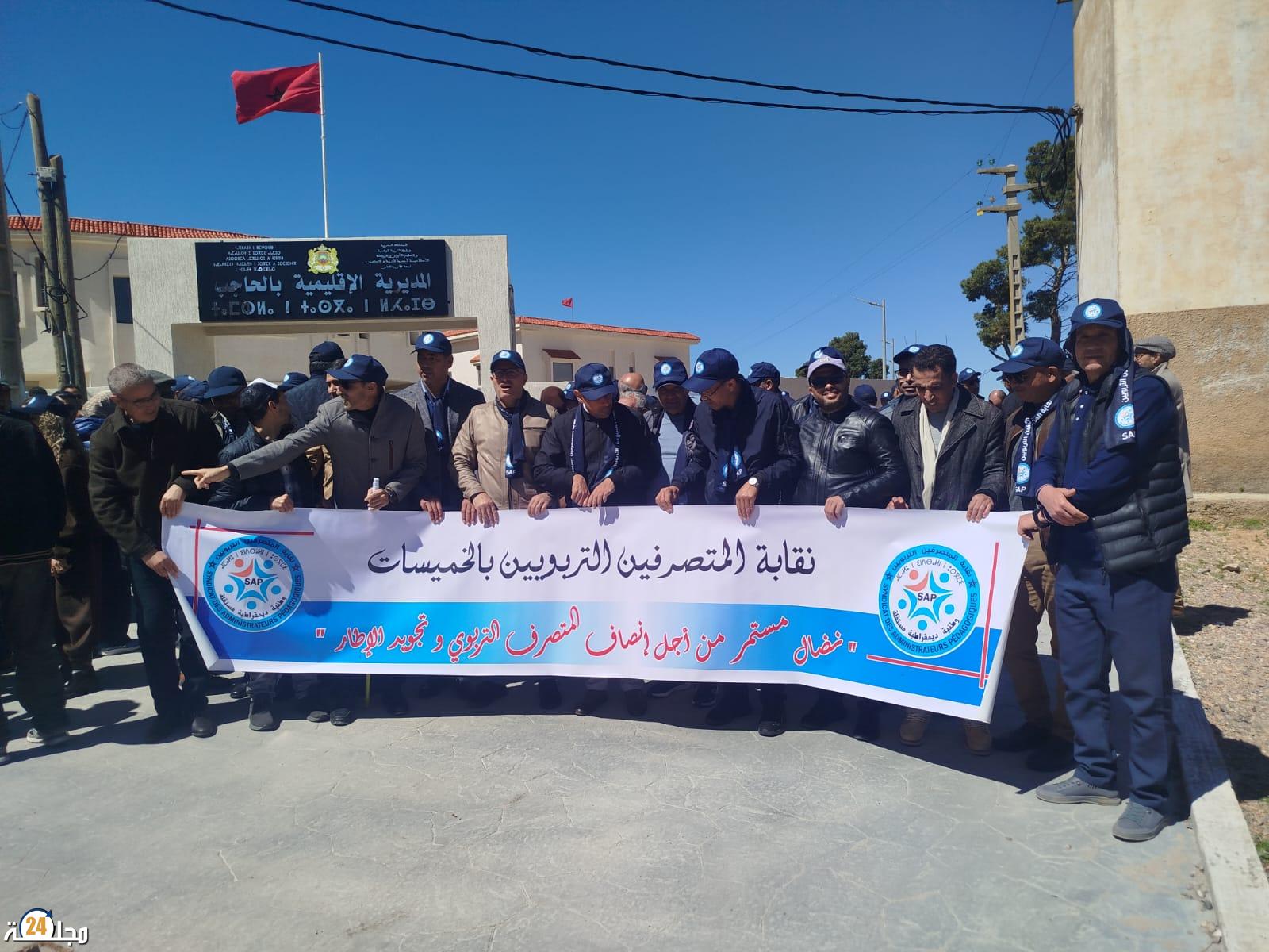 الحاجب تهتز بشعارات الغضب… المتصرفون التربويون يطالبون بالتراجع الفوري عن إعفاء مدير مجموعة مدارس آيت ولال بطيط.
