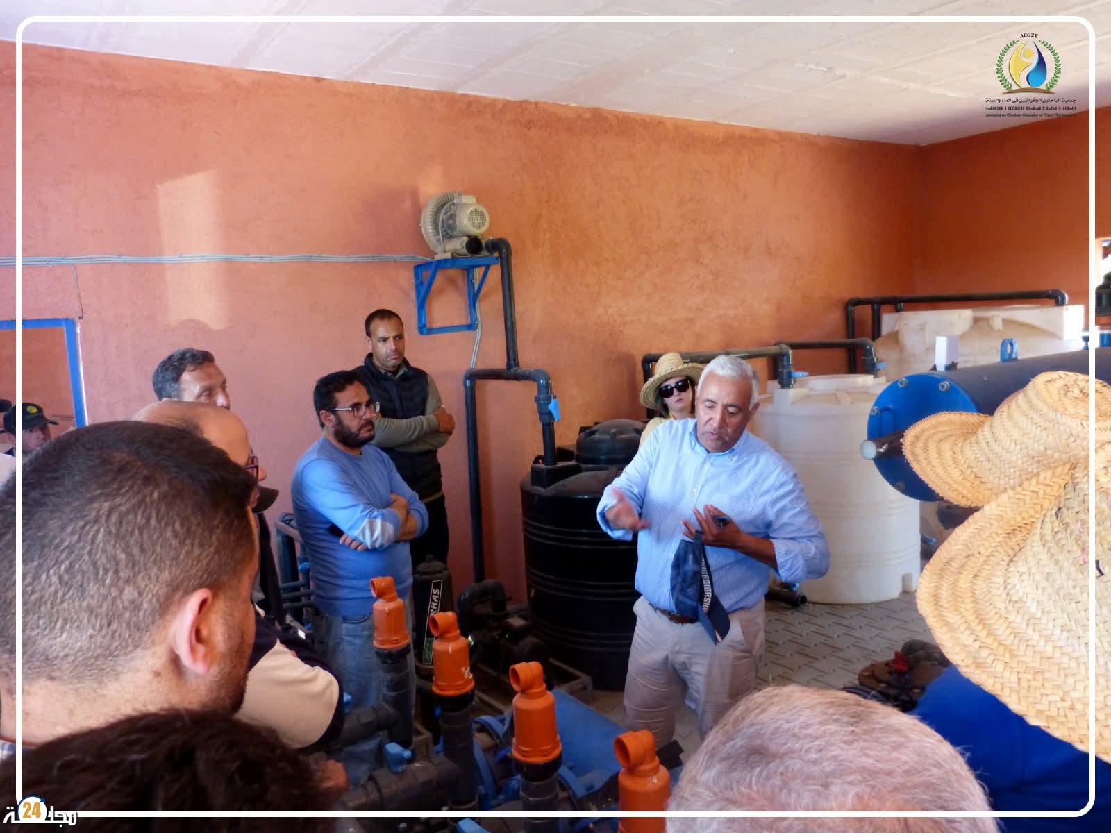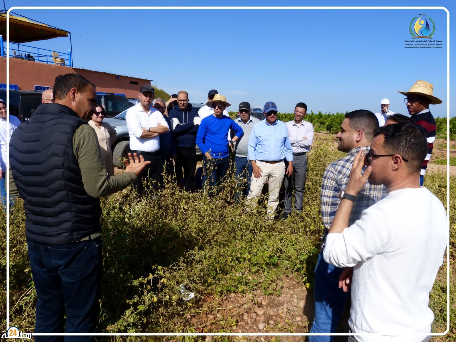 وفي الفترة المسائية، انتقل المشاركون إلى ضيعة فلاحية بإقليم الفقيه بن صالح، حيث اطلعوا على نموذج تطبيقي لتقنيات الري الحديثة التي تجمع بين البعد العلمي والتجربة الميدانية. وخلال هذه الزيارة، قدم السيد محمد رياض، رئيس الغرفة الفلاحية لجهة بني ملال خنيفرة، عرضا حول تقنية مبتكرة في الري مطورة بكفاءات مغربية، تقوم على ترشيد استهلاك المياه وتقليص كلفة الطاقة مع الحفاظ على مردودية الإنتاج، وتعتمد على تدبير ذكي للموارد المائية يراعي خصوصيات المجال المحلي، ما يجعلها نموذجا واعدا لفلاحة مستدامة قادرة على مواجهة تحديات ندرة المياه والتغيرات المناخية.