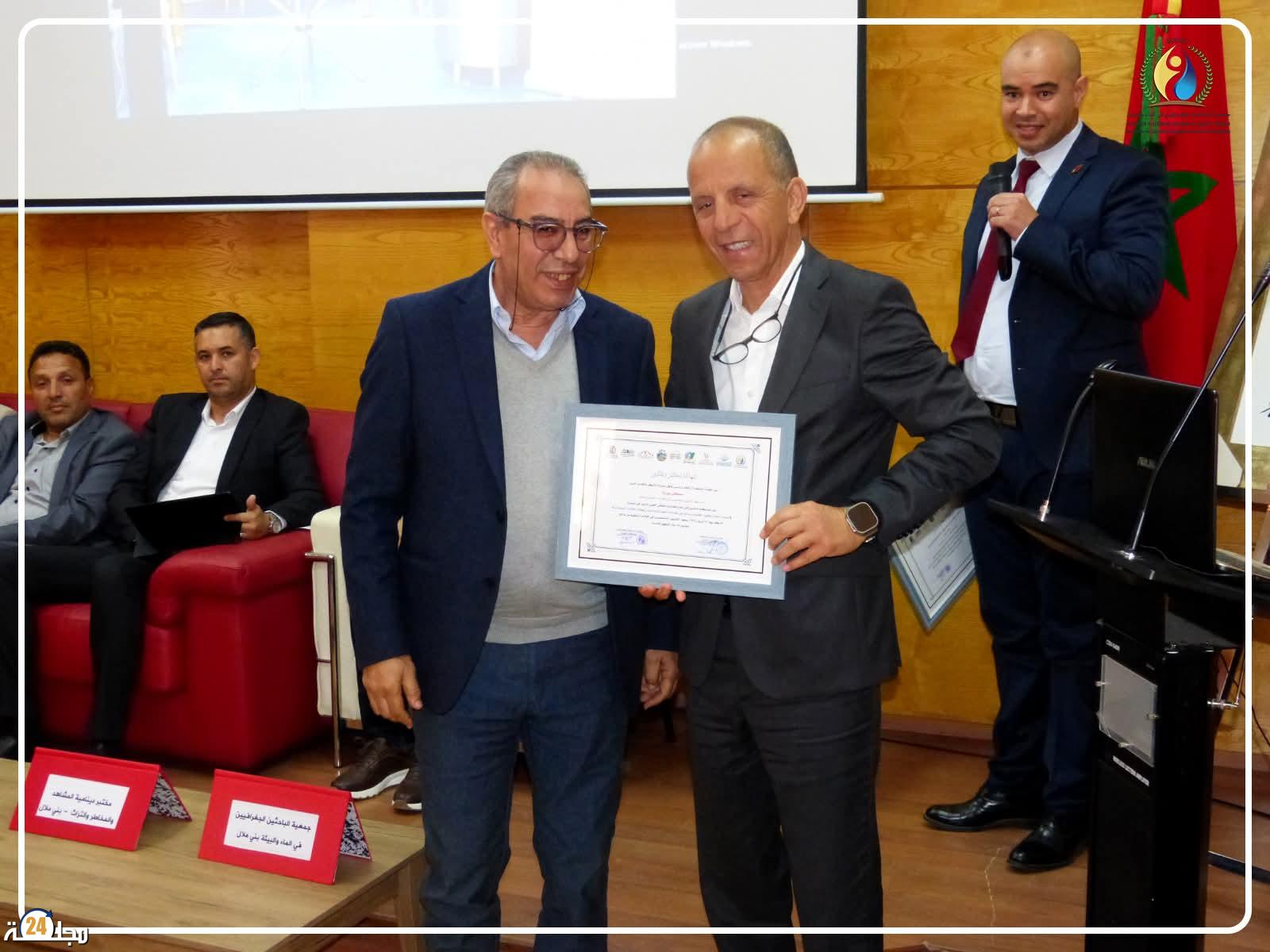 وقد خصصت الفترة الصباحية لندوة علمية قام بتسييرها الأستاذ أيمن حيلي، من كلية الآداب والعلوم الإنسانية ببني ملال، وتضمنت ثلاث مداخلات علمية قدمها كل من الأستاذ طارق العرفي عن جامعة القاضي عياض بمراكش، والسيد أمين ياسين عن المكتب الجهوي للاستثمار الفلاحي لتادلة، والسيد باسو بوعزامة عن المركز الجهوي للبحث الزراعي لتادلة، بني ملال. وقد أبانت هذه المداخلات عن تكامل ثلاث مقاربات أساسية في التعاطي مع إشكالية الماء بالإقليم، حيث ركزت المداخلة الأولى على البعد العلمي من خلال تحليل دينامية الجفاف وفهم تحولاته في ظل التغيرات المناخية، فيما سلطت المداخلة الثانية الضوء على البعد التدبيري المرتبط بتحديات استدامة الفلاحة السقوية وسبل ترشيد استعمال الموارد المائية، بينما أبرزت المداخلة الثالثة أهمية البحث الزراعي كرافعة للابتكار وتعزيز قدرة السلاسل الفلاحية على التكيف، بما يؤكد ضرورة اعتماد رؤية مندمجة تجمع بين المعرفة العلمية والتدبير المحكم والابتكار التقني.