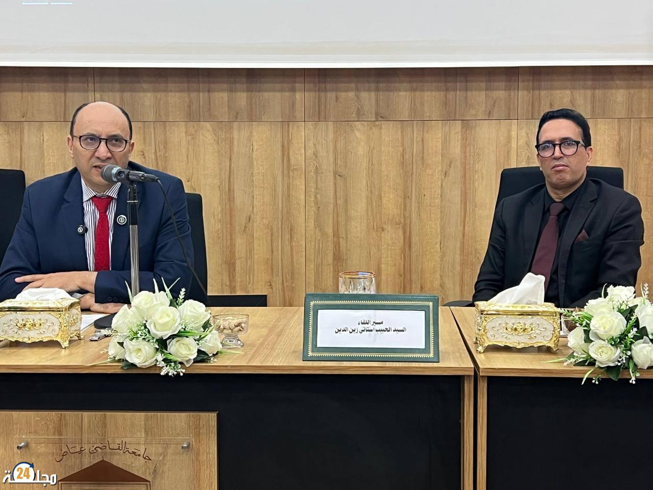 نظمت جامعة القاضي عياض، بتعاون مع كلية العلوم القانونية والاقتصادية والاجتماعية ومختبر الدراسات الدستورية وتحليل الأزمات والسياسات، يوم الخميس 23 أبريل 2026، لقاء علميا بمدرج المختار السوسي بكلية العلوم القانونية والاقتصادية والاجتماعية بـمراكش، استضافت خلاله الأستاذ حسن طارق، وسيط المملكة، الذي ألقى محاضرة في موضوع: “الوساطة المؤسساتية ورهانات تخليق الحياة العامة: من حماية الحقوق إلى تجويد السياسات العمومية”.