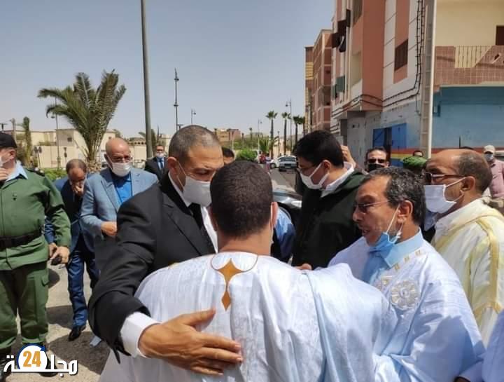 حيث قدم والي جهة العيون الساقية الحمراء والوفد المرافق له تعازيهم الحارة إلى عائلة الفقيد ، معبرين عن أصدق مشاعر المواساة اثر المصاب الجلل ، بعد ان فقد عموم المغاربة رجلا عاش بخصال الوطنية الصادقة و الدفاع المستميت عن الوحدة الترابية للبلاد، والتمسك بأهداب العرش العلوي المجيد.