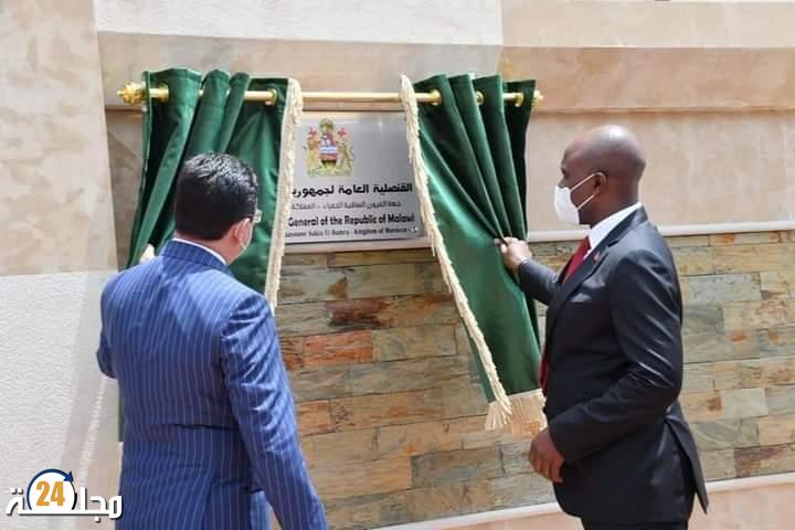 اشرف ناصر بوريطة وزير الشؤون الخارجية والتعاون الإفريقي والمغاربة المقيمين بالخارج، ووزير الشؤون الخارجية والتعاون الدولي المالاوي أيزنهاور ندوا مكاكا صباح اليوم الخميس بمدينة العيون ، على مراسم تدشين و افتتاح قنصلية عامة لجمهورية مالاوي ، بحضور وفد هام من منتخبين و رؤساء المصالح الخارجية يترأسهم والي ولاية جهة العيون الساقية الحمراء .