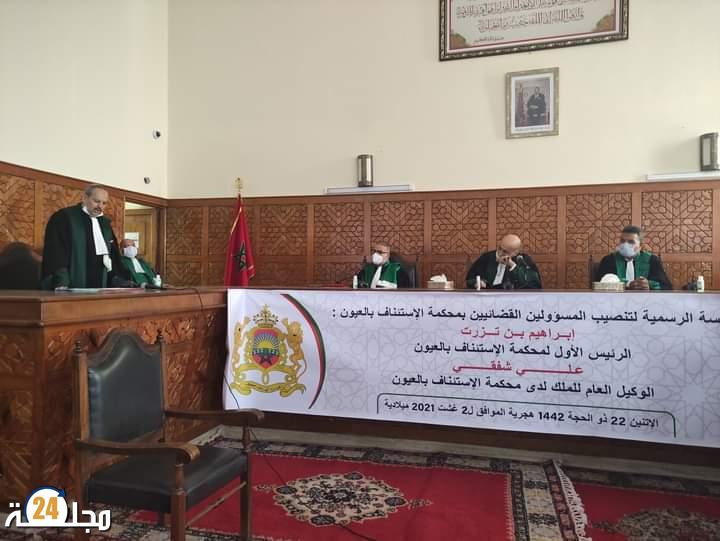حضر السيد عبد السلام بيكرات والي ولاية جهة العيون الساقية الحمراء و رؤساء المجالس المنتخبة رفقة وفد هام، مراسيم تنصيب الرئيس الأول لمحكمة الاستئناف الجديد ابراهيم بن تزرت خلفا للاستاذ محمد البار الذي احيل على التقاعد خلال الأشهر القليلة الماضية، فيما تم تعيين المحامي العام بمحكمة النقض الاستاذ علي شفقي وكيلا عاما بمحكمة الاستئناف بالعيون خلفا للاستاذ صالح التيزاري الذي عين بذات المهمة بإستئنافية مراكش.