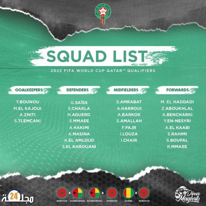 اللائحة النهائية لـ”الأسود” لمواجهة غينيا بيساو وغينيا كوناكري