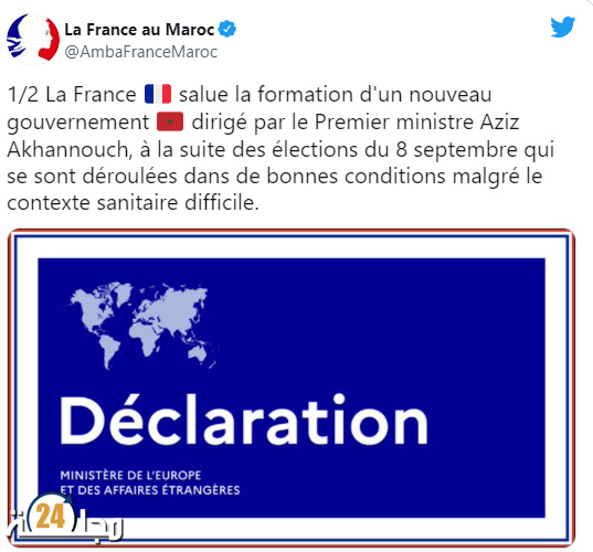 فرنسا ترحب بالحكومة الجديدة وتؤكد حرصها على الاستمرار في تعميق الشراكة الاستثنائية مع المغرب