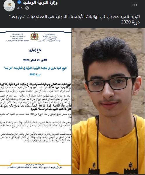 تتويج تلميذ مغربي بالميدالية النحاسية في نهائيات الأولمبياد الدولية في المعلوميات دورة 2020