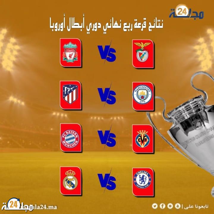نتائج قرعة ربع نهائي دوري أبطال أوروبا..