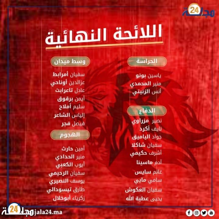 وفيما يلي لائحة المنتخب المغربي: