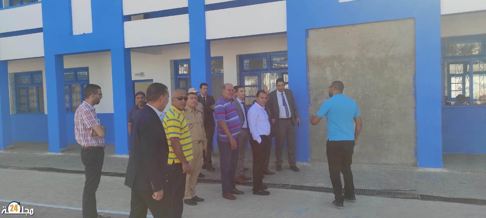 وضم الوفد كل من المدير الاقليمي لوزارة التربية الوطنية، وباشا المدينة، و رؤساء الملحقات الادارية، و قائد الحرس الترابي، ومندوب الانعاش الوطني، و ممثل الامن الوطني، و مجموعة من ممثلي المجتمع المدني، ورؤساء جمعيات الاباء، وبعض مديري واساتذة المؤسسات التعليمية، واطر وموظفي المندوبية ، عاين خلالها بعض مرافق المؤسسة و بعض الفصول الدراسية حيث لوحظ التحول والجمالية التي اصبحت عليها المؤسسة خصوصا بتدخل وتعاون كل المكونات وبتنسيق مع المديرية الاقليمية ومنها على الخصوص اوراش والانعاش الوطني والجماعة وميكومار والمساحات الخضراء وغيرها اذ ساهمت جهود الجميع في تحسن ملفت للمؤسات التعليمية بصفة عامة وزادتها جمالية وجاذبية ، تلاها الانصات الجماعي للنشيد الوطني.