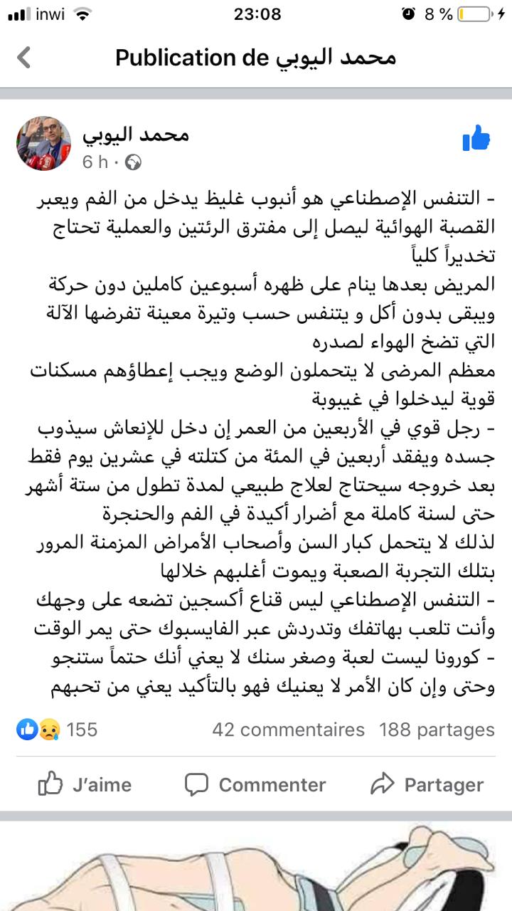 هذا ما قاله محمد اليوبي حول التنفس الاصطناعي