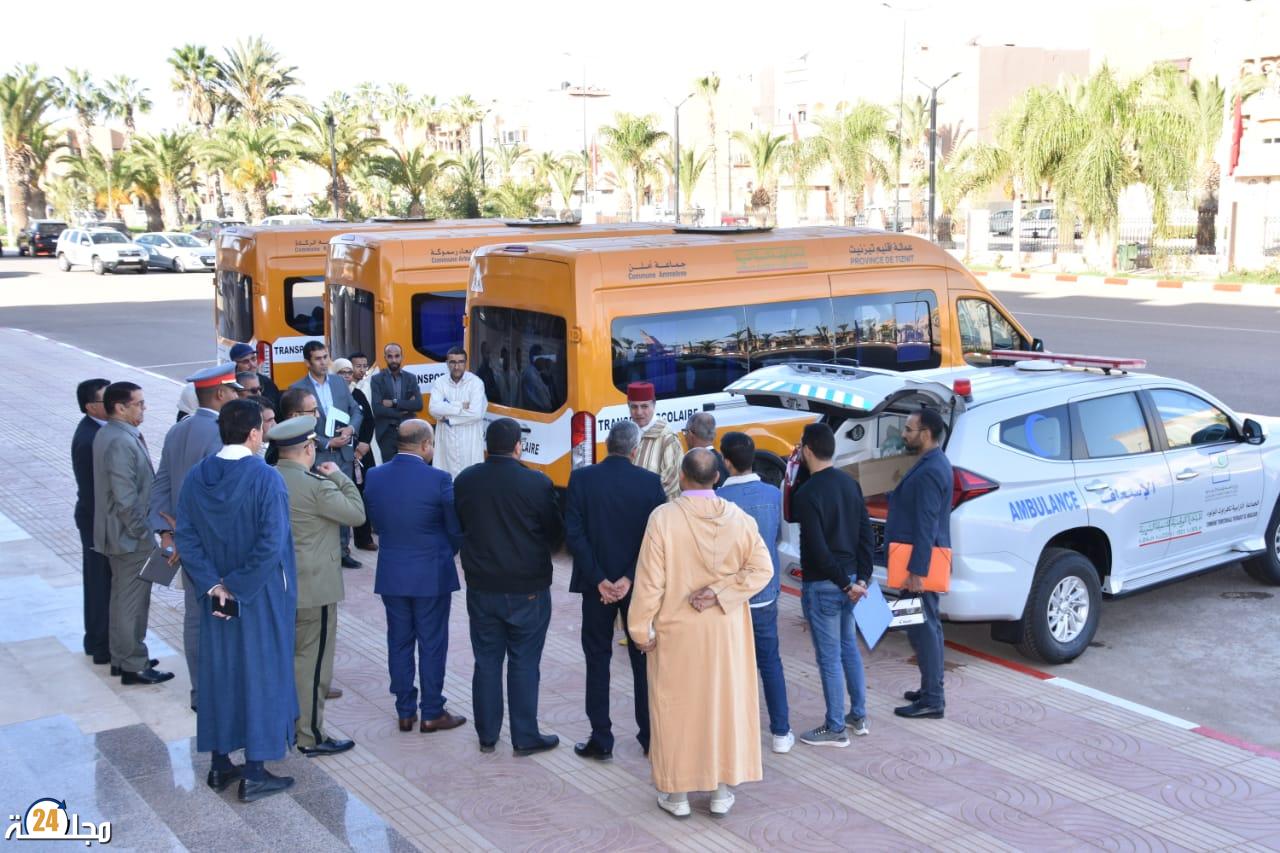 تسليم سيارة اسعاف مجهزة وحافلات للنقل المدرسي بمقر عمالة إقليم تيزنيت