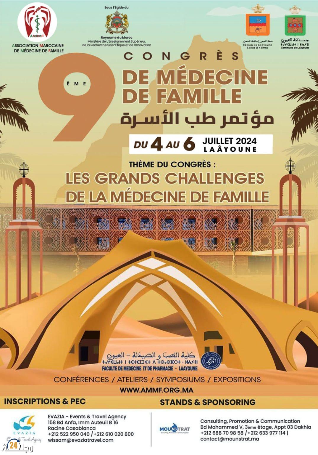 يحتضن قصر المؤتمرات بالعيون ، خلال الفترة ما بين 4 و 6 يوليوز المؤتمر التاسع لطب الأسرة ، الذي تنظمه الجمعية المغربية لطب الأسرة بشراكة مع كلية الطب و الصيدلة بالعيون .