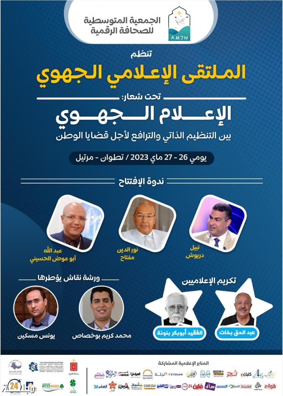 تحتضن تطوان يومي 26 و27 ماي القادم الملتقى الجهوي الاعلامي لجهة طنجة تطوان الحسيمة والمنظم من طرف الجمعية المتوسطية للصحافة الرقمية تحت شعار “الاعلام الجهوي.. بين التنظيم الذاتي والترافع لأجل قضايا الوطن”.