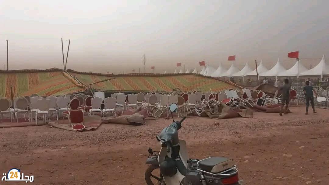 عاش موسم تاخصايت بجماعة أولاد ناصر بإقليم الفقيه بن صالح، عشية أمس الإثنين، على وقع اضطراب مناخي مفاجئ بعدما ضربت عاصفة قوية فضاء الاحتفالات، متسببة في اقتلاع عدد من الخيام وتطاير تجهيزات كانت معدة لاحتضان الزوار والفعاليات الموازية.