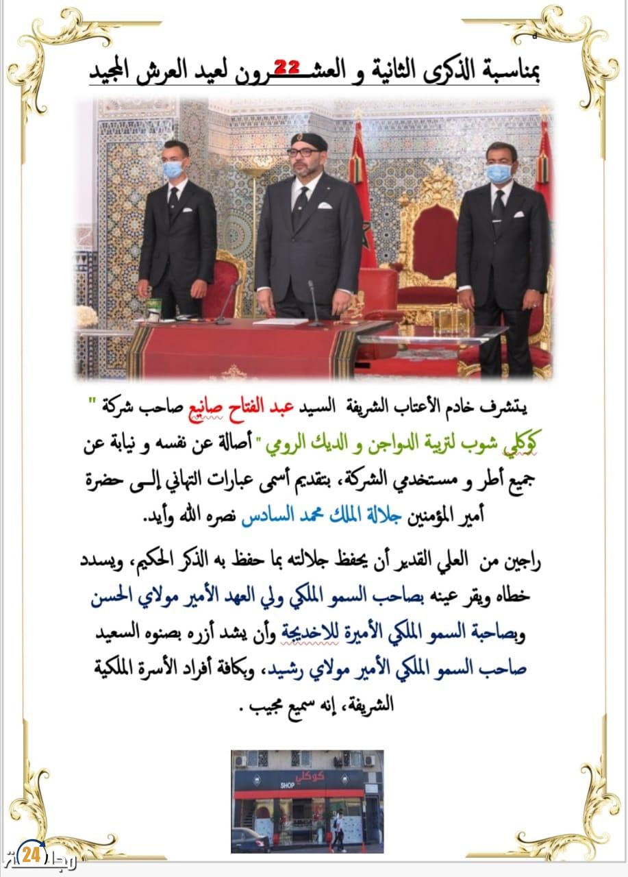 عبد الفتاح صانيع صاحب شركة كوكلي شوب يهنئ جلالة الملك محمد السادس بمناسبة الذكرى 22 لعيد العرش المجيد 30 يوليوز، 2021 0 مجتمع Facebook Whatsapp Twitter طباعة Post Views: 178