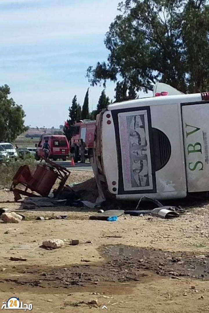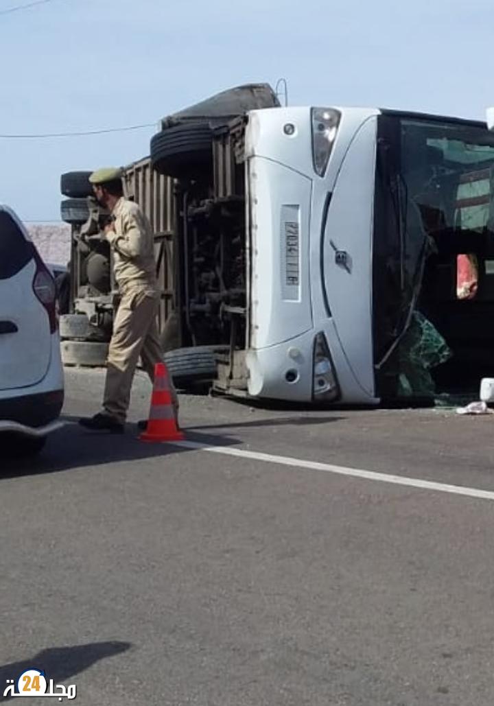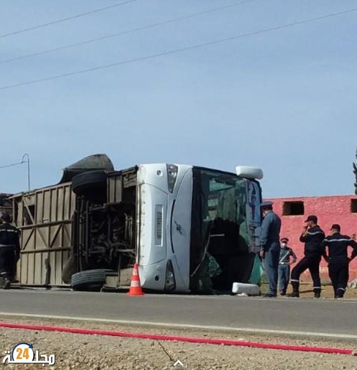 خطير…انقلاب حافلة لنقل الركاب بين الجديدة واولاد فرج