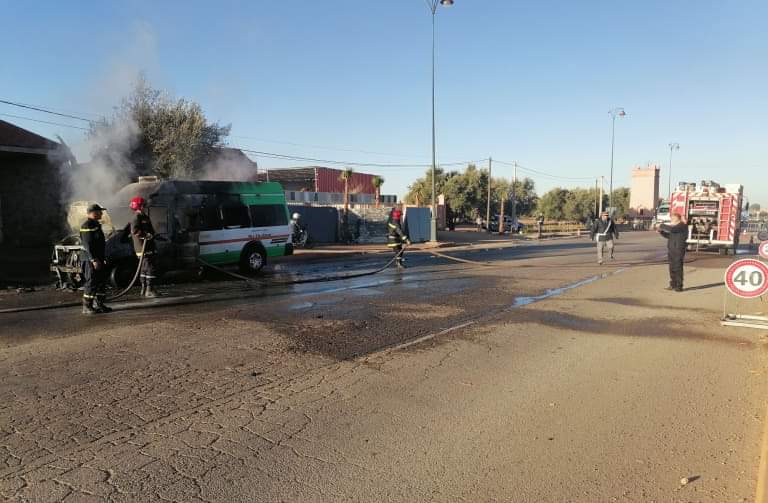 شب حريق صباح اليوم الجمعة 29 يناير الجاري، بسيارة للنقل المزدوج بمدخل مدينة أيت أورير.