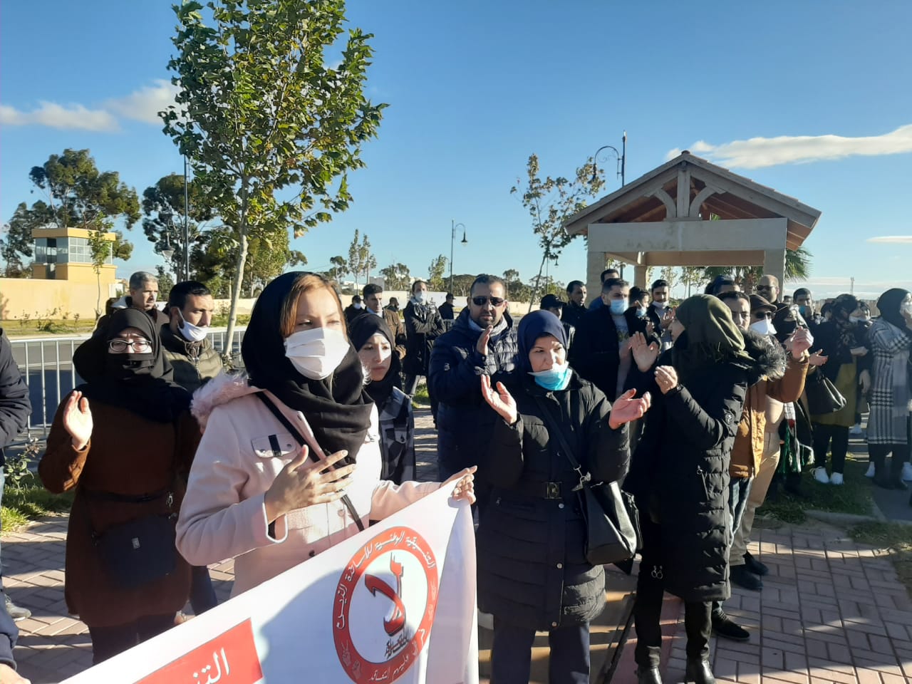 ويأتي هذا الاحتجاج في سياق التنديد بالتضييق على حرية الاحتجاج، أمام مطالب عادلة للمعنيين بالأمر والمتعلقة بالإدماج في أسلاك الوظيفة العمومية. وقد شاركت في هذه الوقفة الاحتجاجية فعاليات نقابية وحقوقية