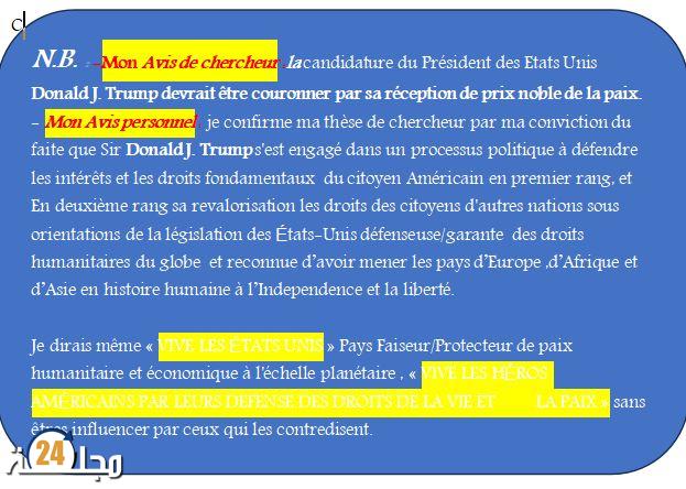 Ainsi, d’un point de vue scientifique, géopolitique et juridique ,la candidature de Donald J. Trump pour Le Prix Nobel de la Paix serait fondé et défendable.