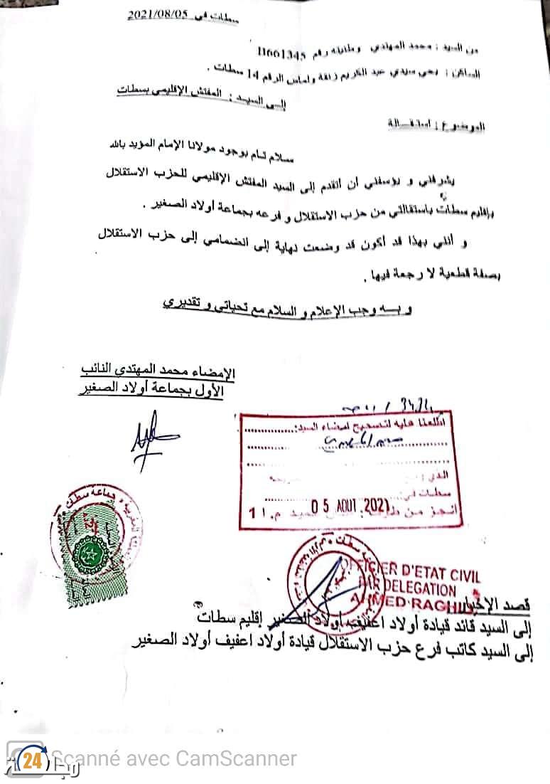 النائب الأول بجماعة أولاد الصغير إقليم سطات يقدم استقالته من حزب الاستقلال