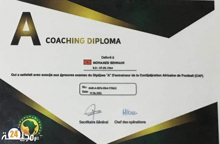 الإطار التقني محمد بناني يجتاز اختبارات نيل دبلوم الدرجة ” A ” المعترف به من قبل ” الكاف ” بامتياز كبير .