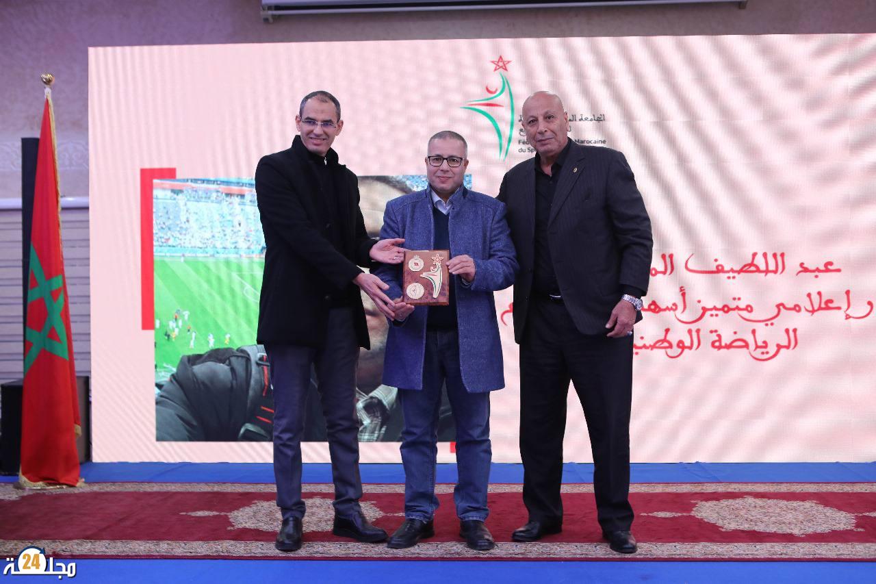 وتأكيدًا لثقافة الاعتراف والتقدير، اختارت الجامعة أن تجعل من هذه الاحتفالية تقليدًا سنويًا يتم من خلاله تكريم مجموعة من الشخصيات التي قدمت مساهمات بارزة في المجال الرياضي والإعلامي. وشمل التكريم عددًا من الأسماء اللامعة، من بينهم الصحفي الرياضي المخضرم مصطفى بدري، والإعلامية ابتسام زروق، وعبد المجيد النبسي من جريدة “الاتحاد الاشتراكي”، وحسن العطافي، الصحفي متعدد التخصصات، إلى جانب غزلان السولامي، إحدى الرائدات في مجال الصحافة الرياضية النسائية، ومنصف اليازغي، الإعلامي والباحث الأكاديمي، وعبد اللطيف المتوكل، الإعلامي الذي أسهم في تعزيز إشعاع الرياضة الوطنية.